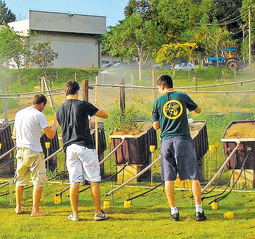 Alunos da Faculdade de Engenharia Agrícola testam técnicas de irrigação e drenagem durante aula de campo na Universidade Estadual de Campinas.