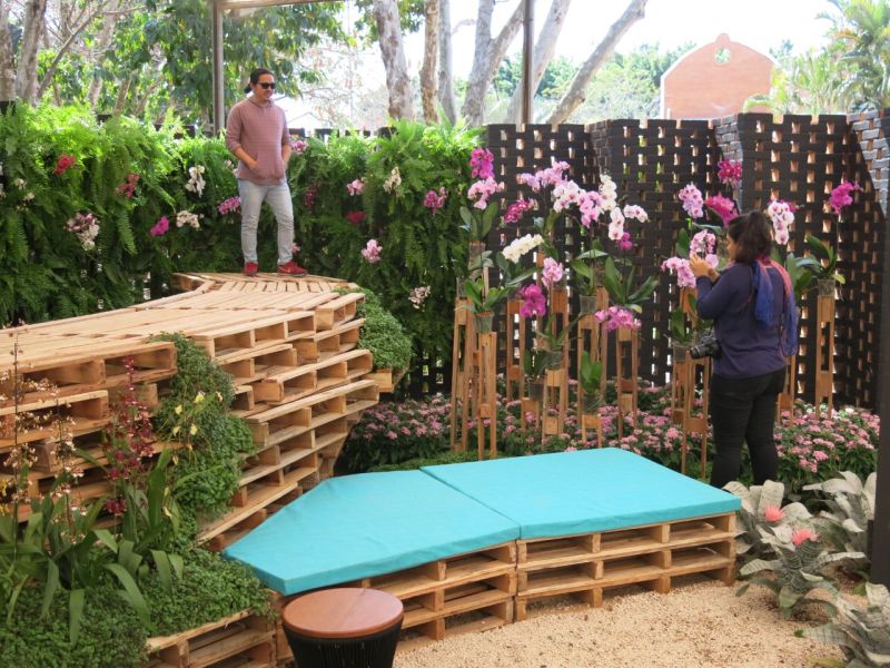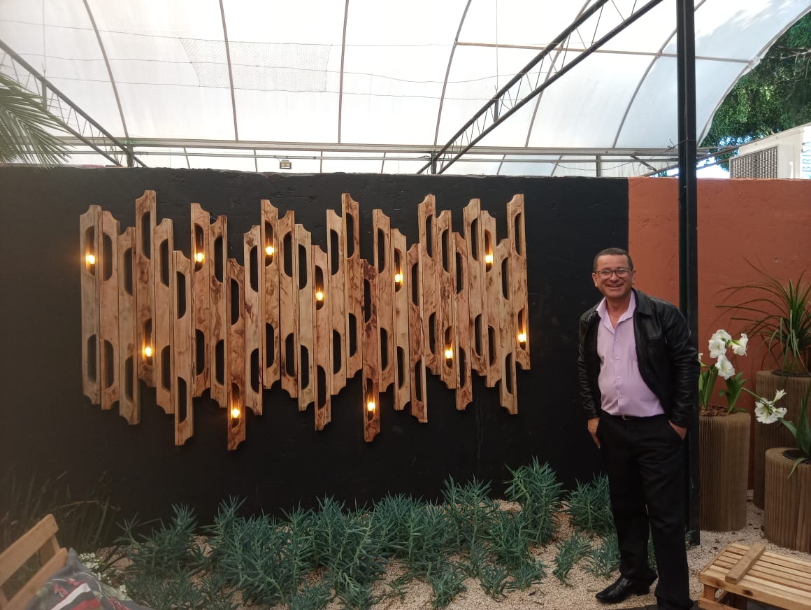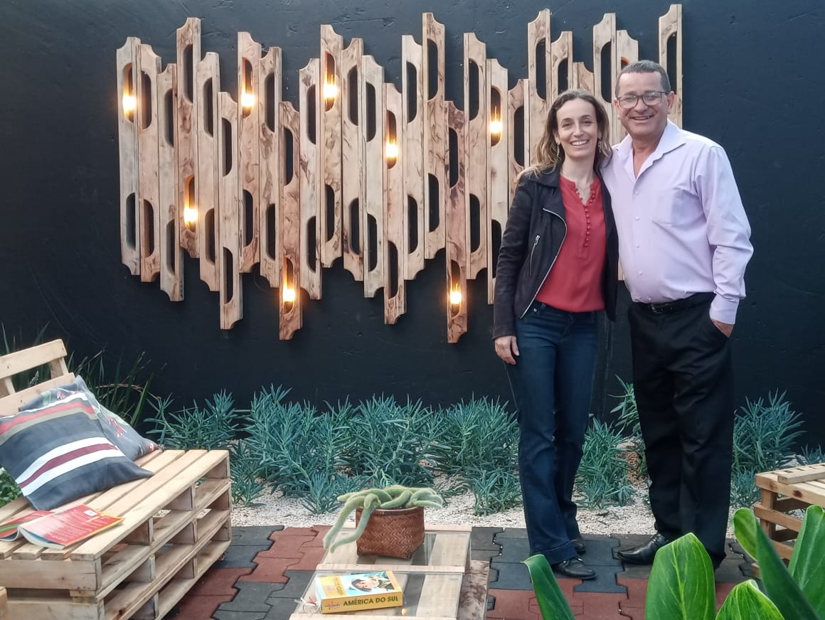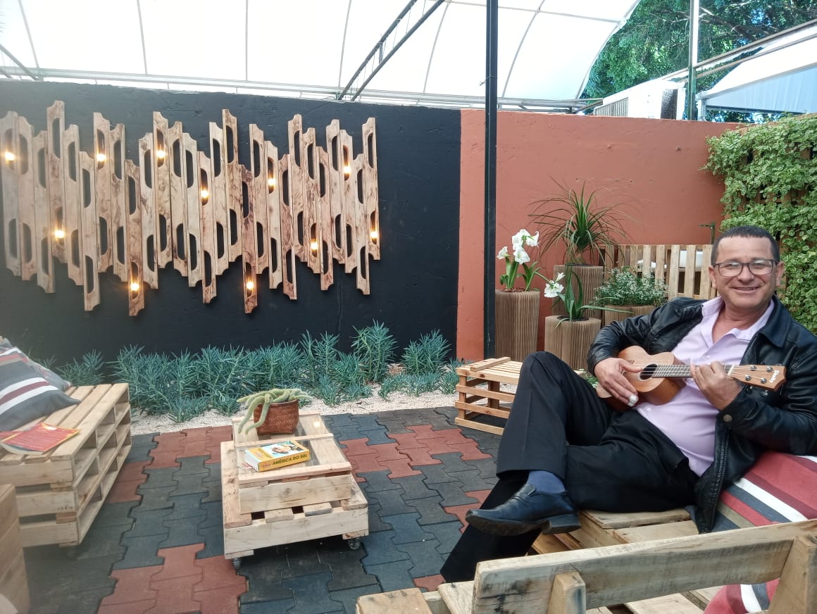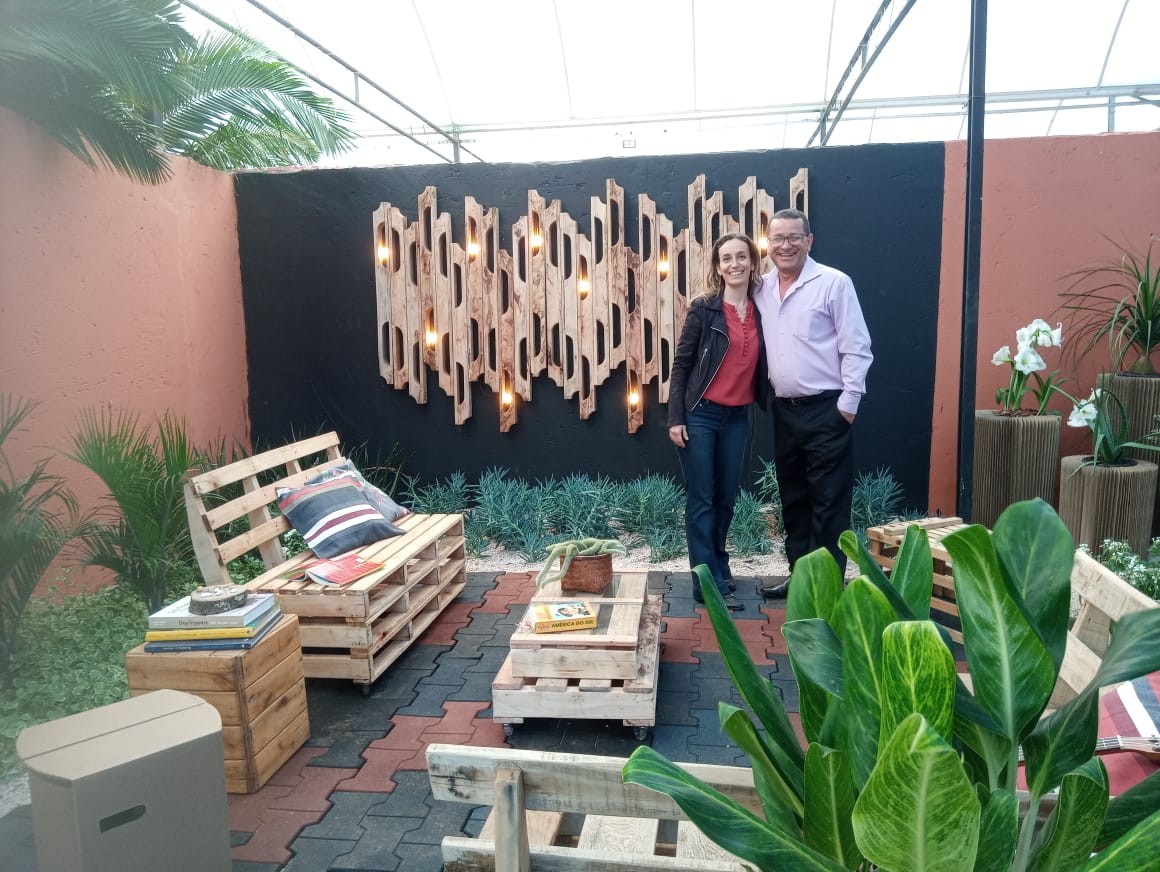 O espaço 01 foi montado com o mobiliário fabricado em pallets, desenvolvido pelo funcionário da FEAGRI, José Maria da Silva, responsável pelo Projeto Recicle.