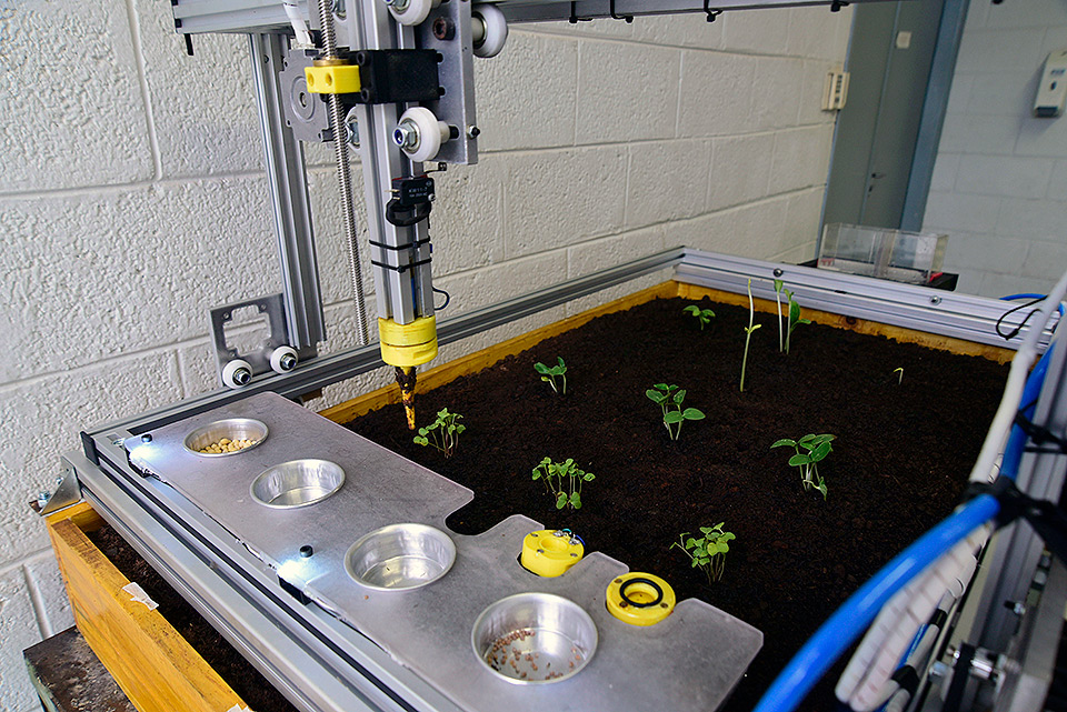 O professor Angel Pontin Garcia, responsável pelo curso e um dos seus coordenadores, o pesquisador Claudio K. Umezu, esclarecem que o protótipo do robô construído resulta de um trabalho de conclusão de curso concebido, projetado e executado por quatro de seus alunos: Marcos Vinicius Lopes - engenheiro eletrônico; Cleber Katsuaki e Willy Rizola, engenheiros de controle e automação; e Ricardo Hideyo Hirai, engenheiro de produção mecânica, que já exercem atividades profissionais. Trata-se de um trabalho prático, inserido no contexto da engenharia agrícola, que utiliza grande parte do que foi ministrado no curso.