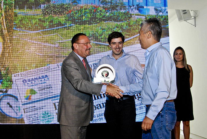 O método que permite a irrigação de plantações de cana-de-açúcar com esgoto doméstico premiou os pesquisadores Eduardo Augusto Agnellos Barbosa e Leonardo Nazário Silva dos Santos, que foram orientados durante o doutorado, pelo Prof. Dr. Edson Matsura.