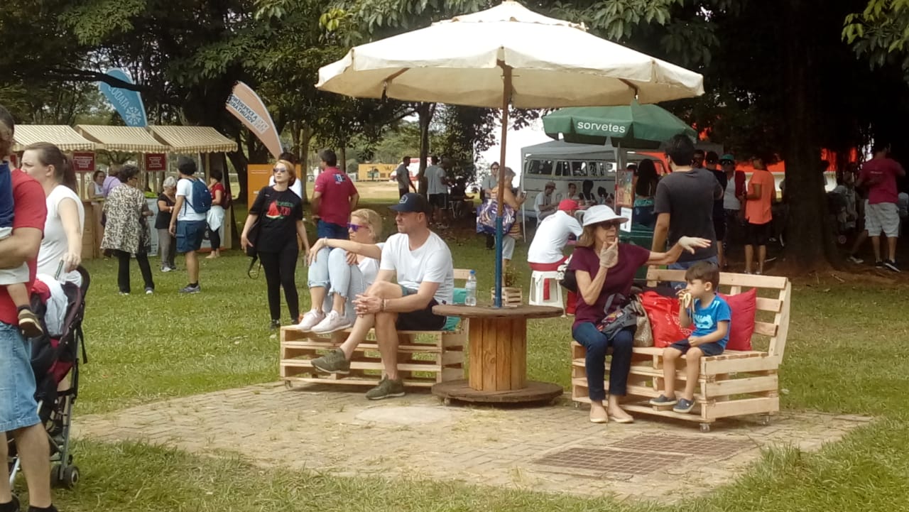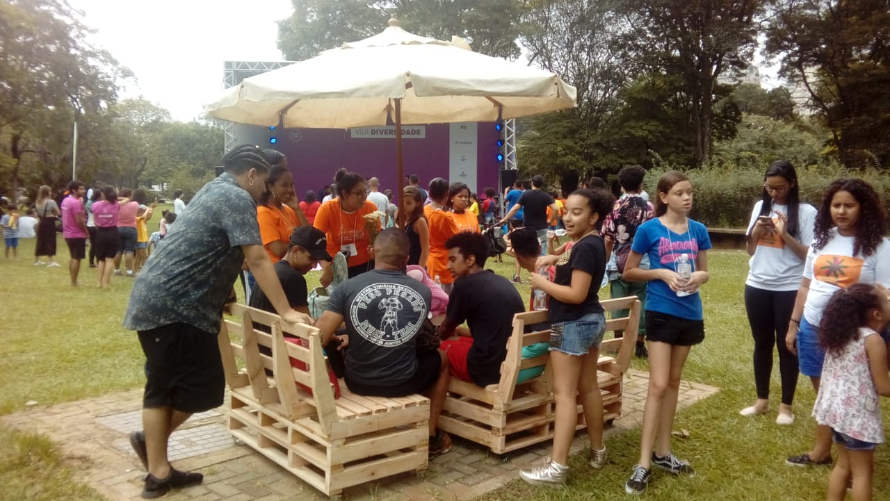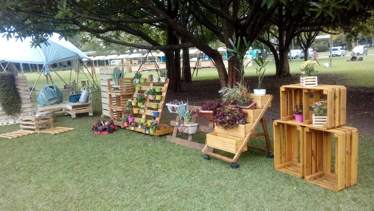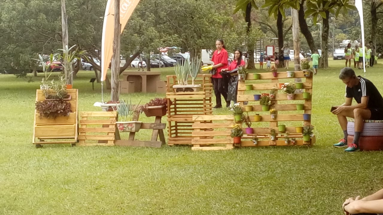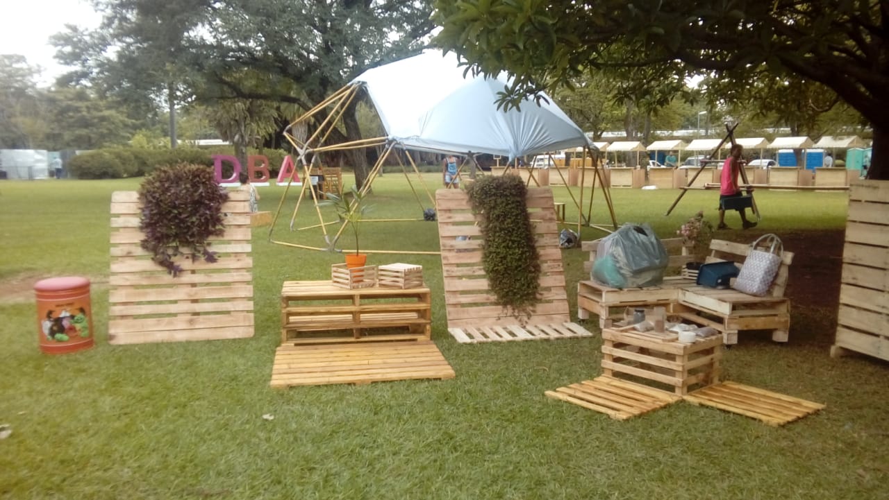 Os pallets confeccionados no Laboratório de Protóticos da FEAGRI, à partir de material descartado, foram expostos no Ibirapuera - SP no último dia 06/04.