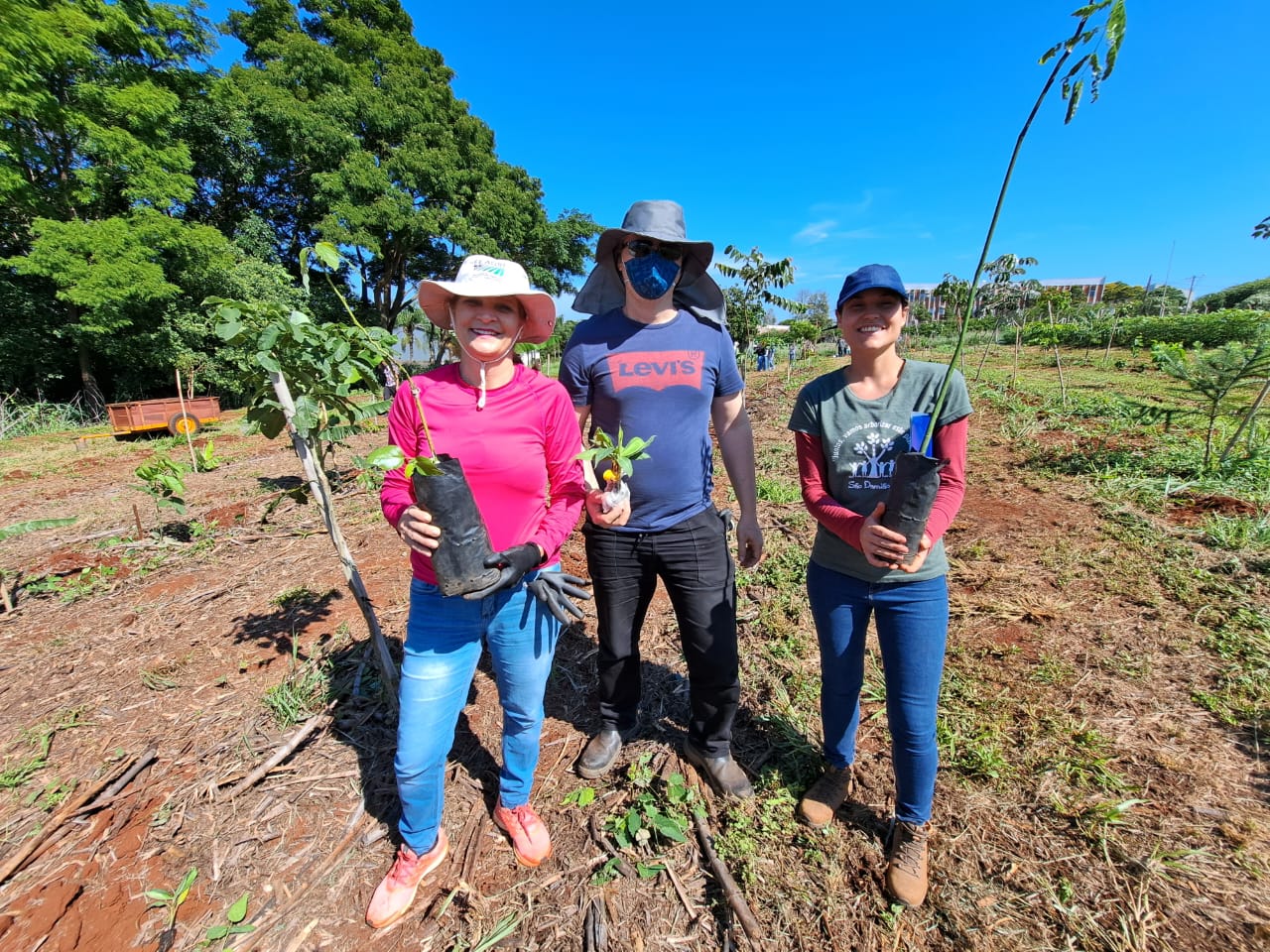 Nesta etapa aconteceu o plantio de espécies arbóreas nativas e frutíferas, totalizando 300 mudas plantadas em 6 diferentes linhas.
